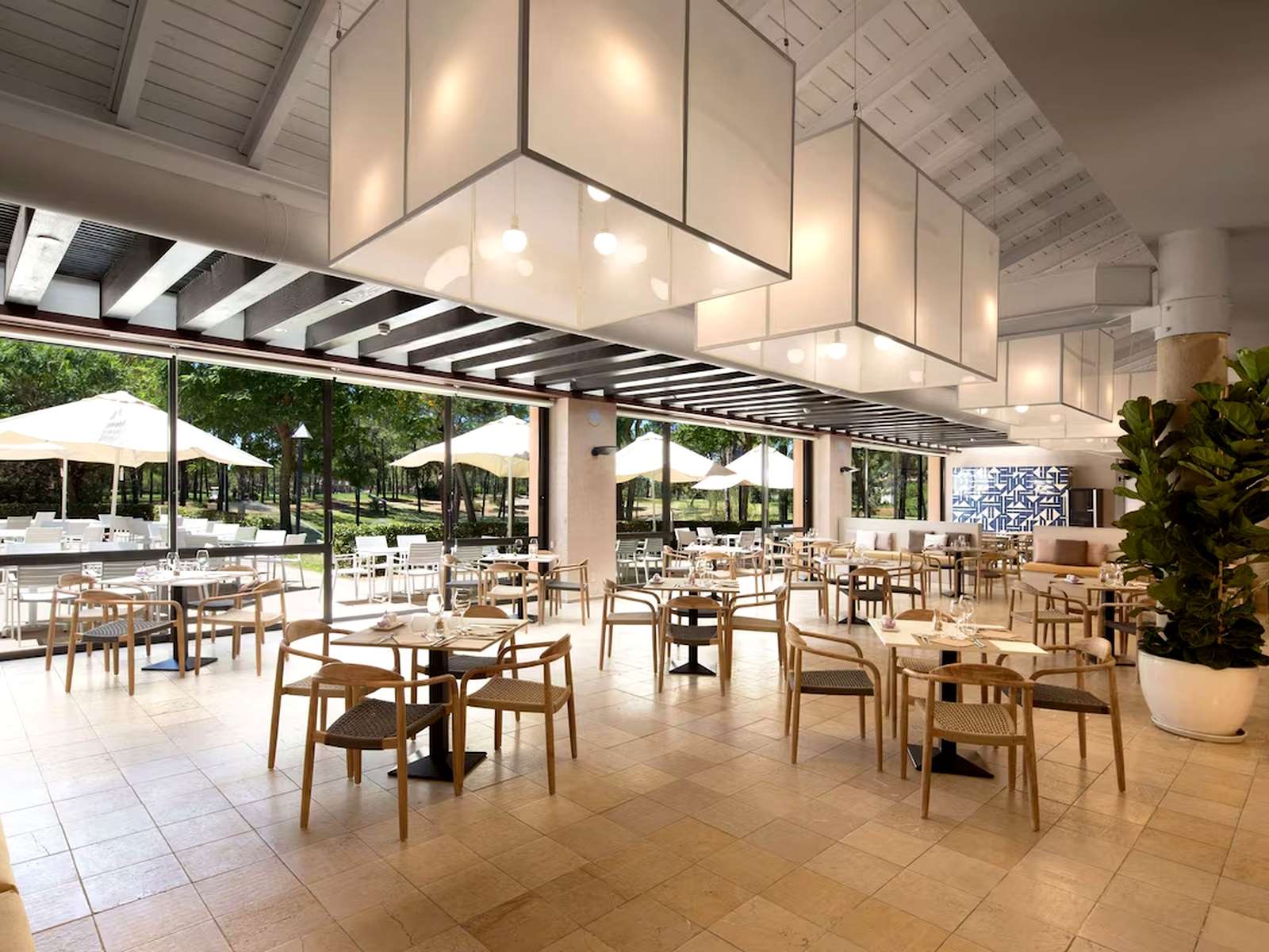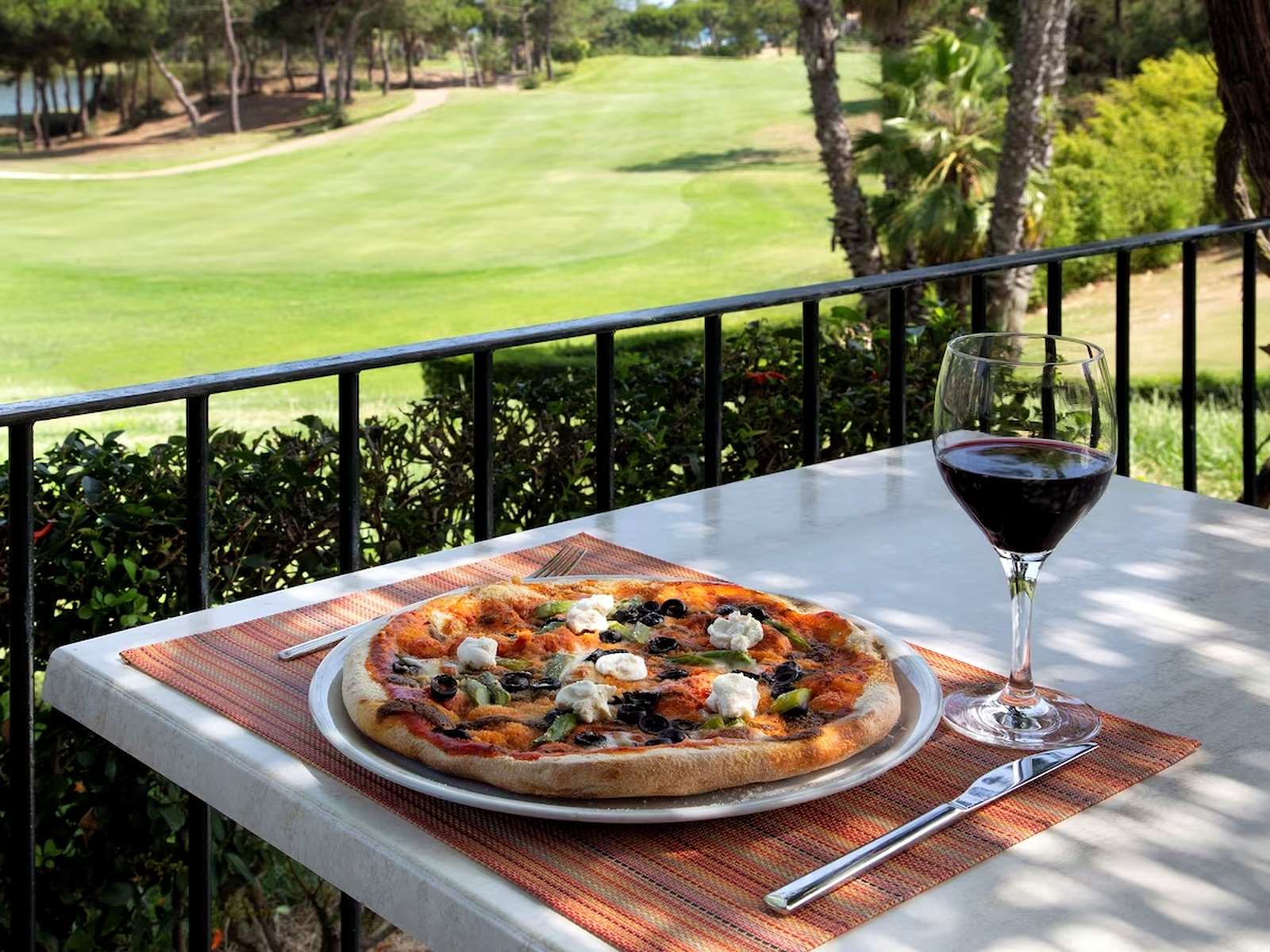 À-la-carte-Restaurant „La Ola“ mit Terrasse und Blick auf den Golfplatz