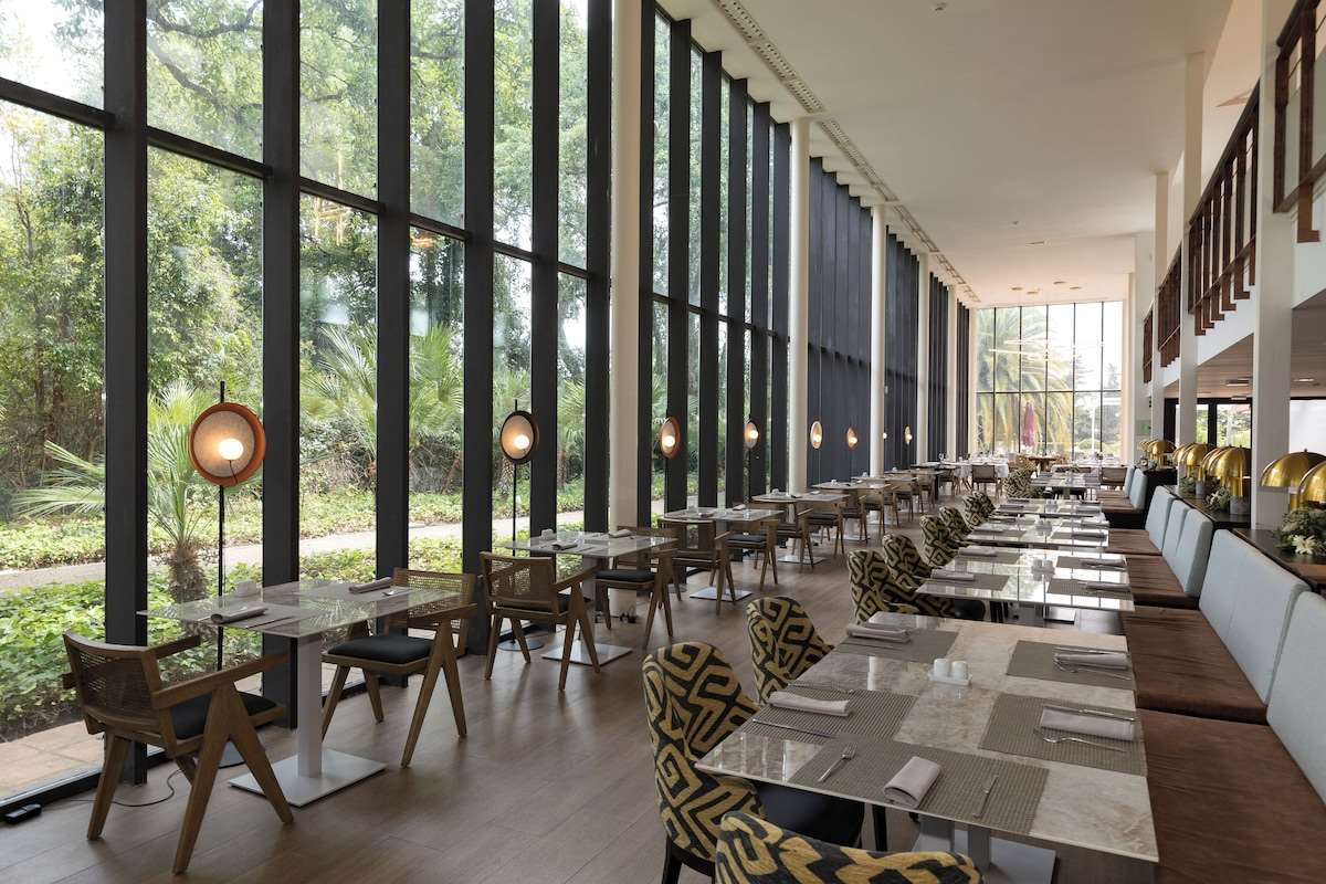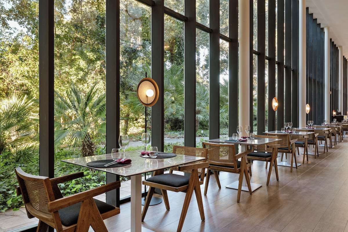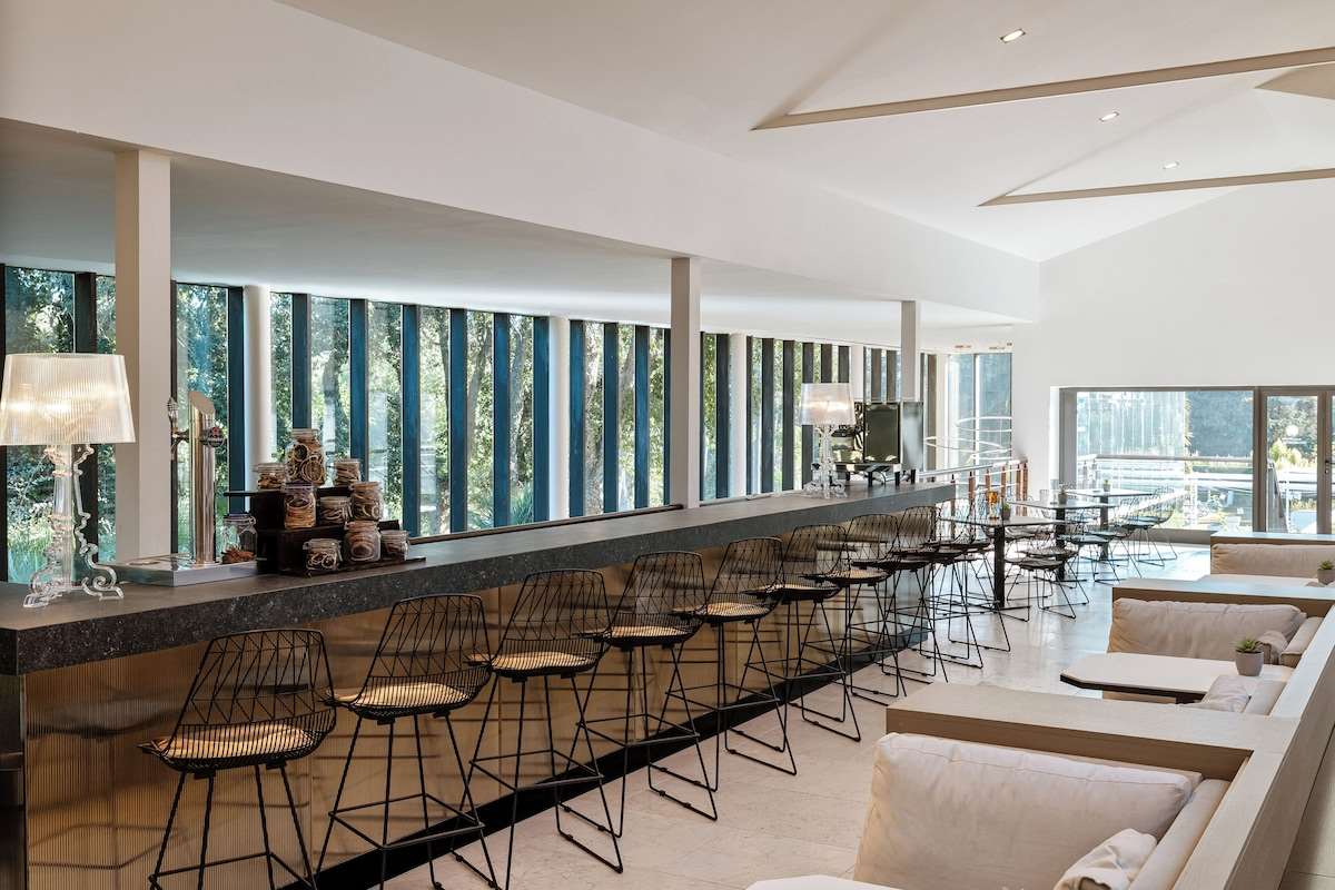 Das Hotel bietet komfortable und großzügige Zimmer, viele davon mit Blick auf die Gartenanlage oder den nahegelegenen Golfplatz. Zu den Einrichtungen gehören ein Außenpool, ein Fitnessbereich, Tennis- und Padelplätze sowie ein Restaurant und eine Bar.